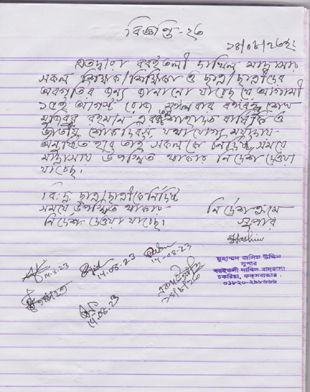 ভর্তিচ্ছু নির্বাচিত শিক্ষার্থীর তালিকা